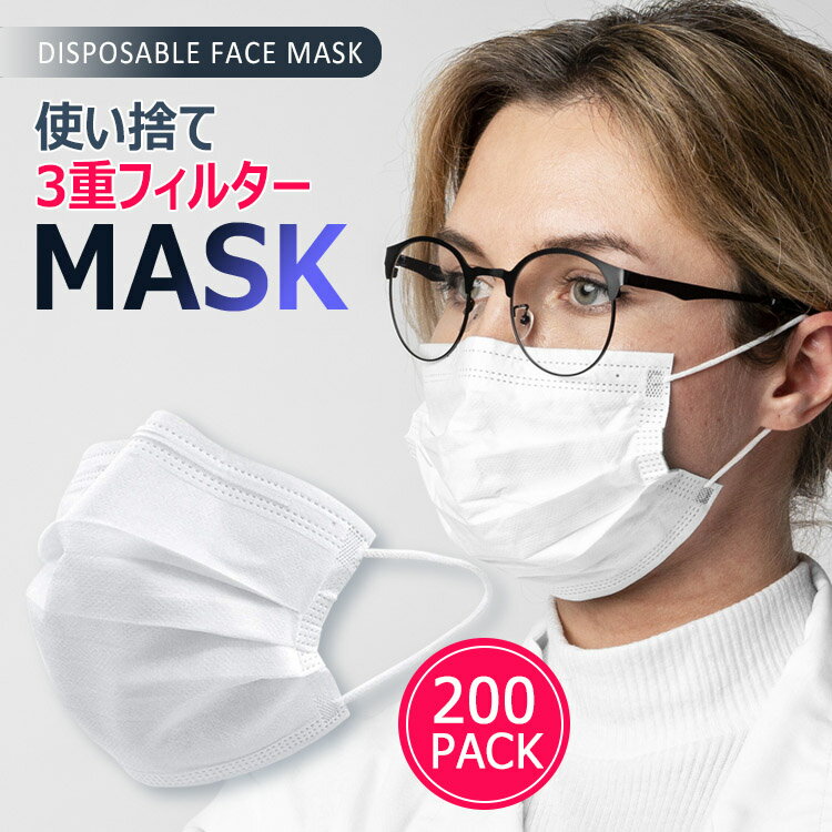 使い捨て3重フィルターマスク 大容量 不織布マスクフェイスマスク 立体設計 ウイルス対策,花粉対策,花粉,PM2.5対応マスク 使い捨て ホワイト(200Pack)